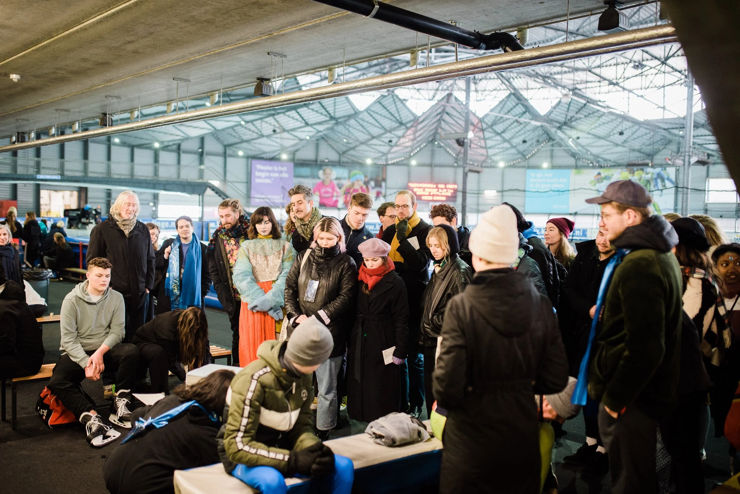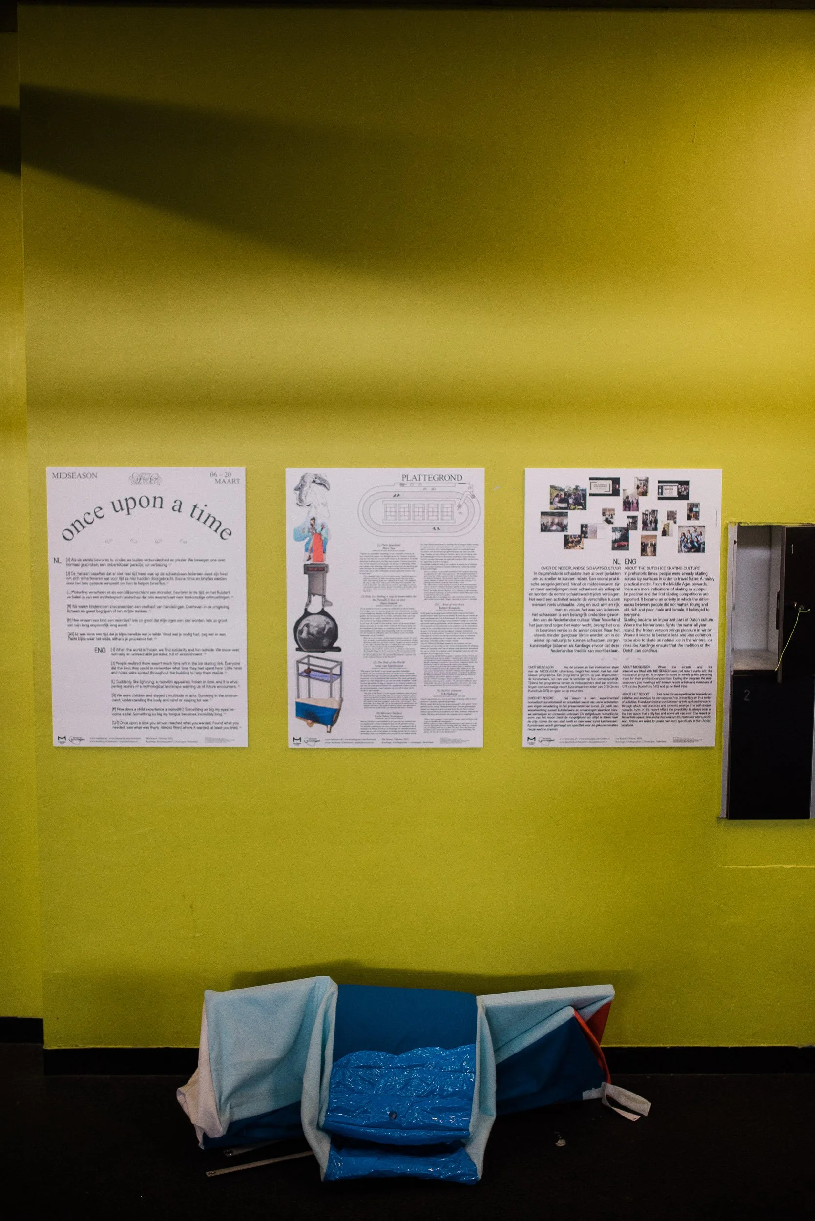 Project bijna was a residency project at ’t Resort. I created an object and two interactive seating for an exhibition in an ice-skating rank. The benches are embracing the trail and error moments of learning and offer a place of rest and play at the moments of just beginning and ending. They hold instruction to help, guide and support one another.