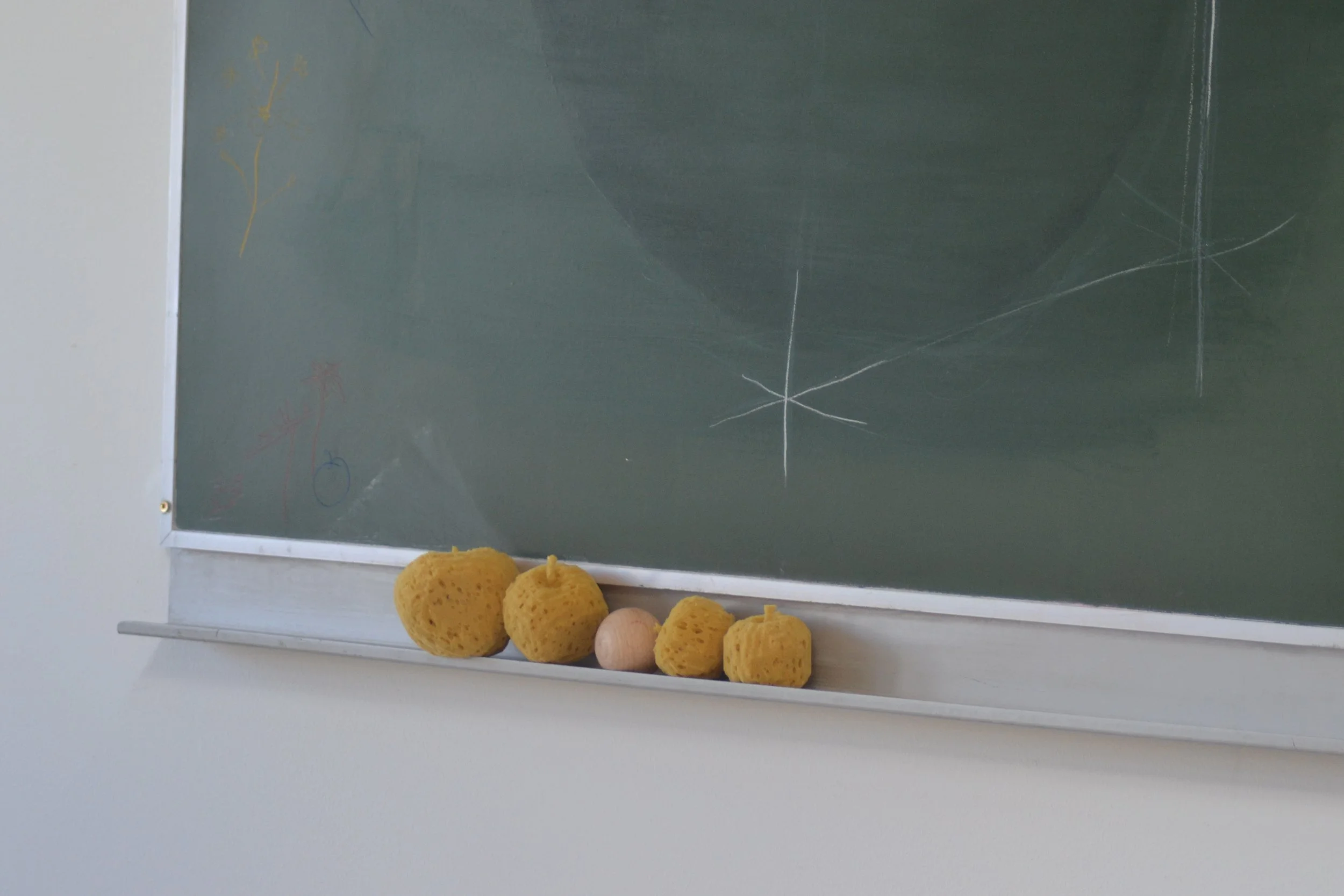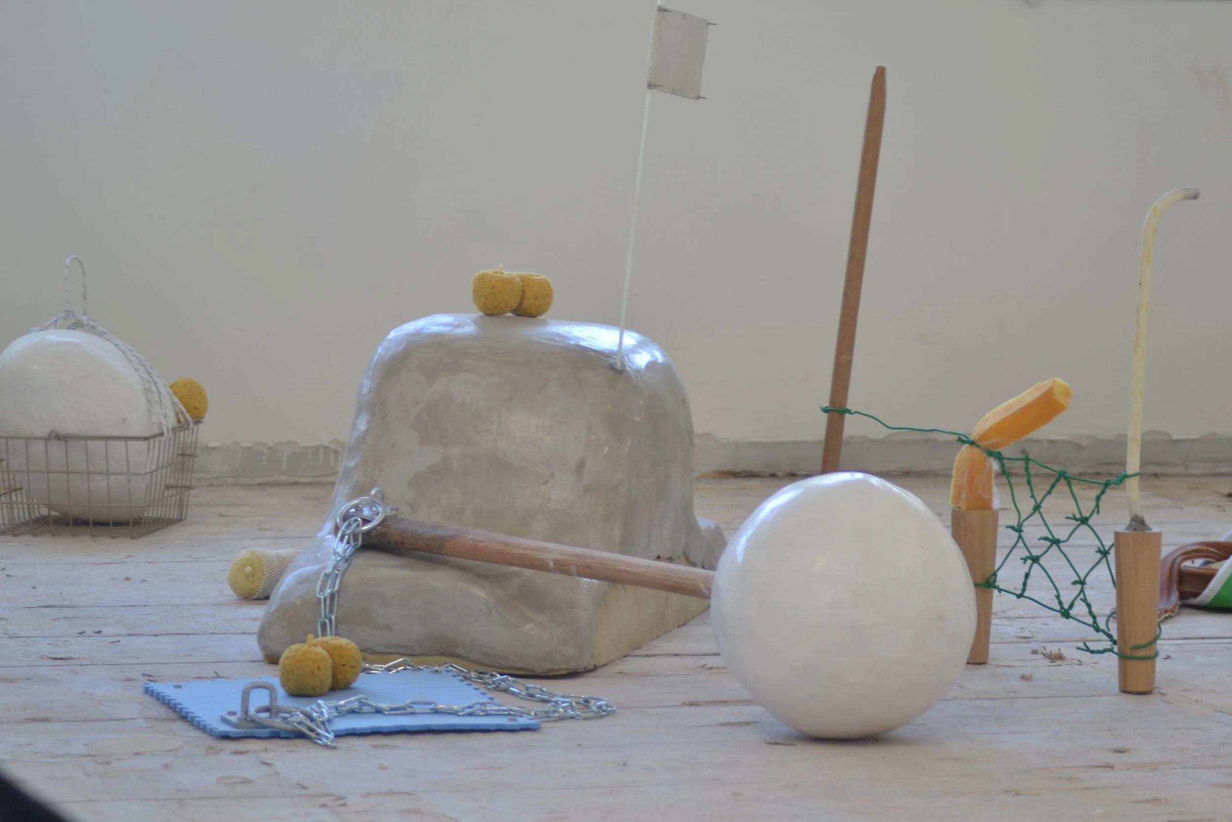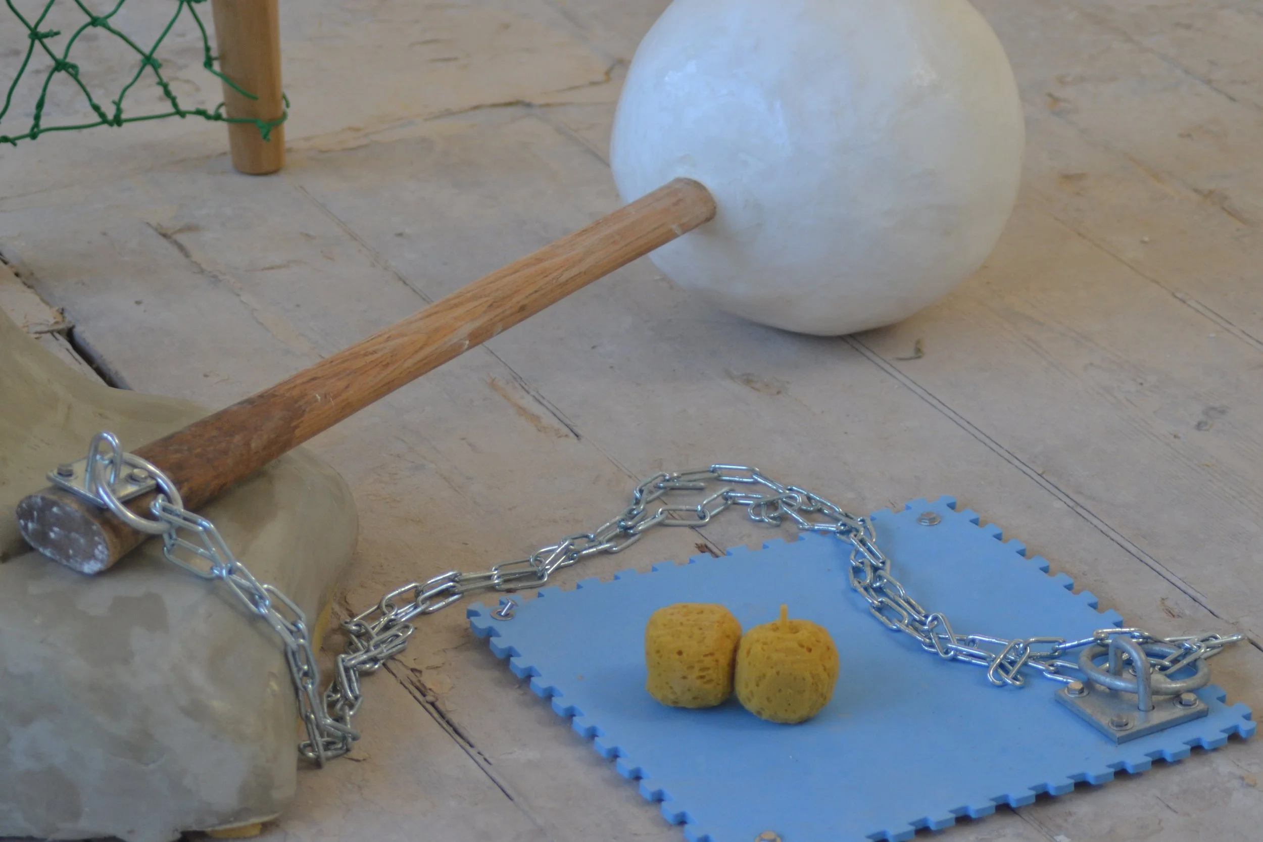 Een dag in het dagboek van is an installation that portrays the moment of adolescent growth. It visualizes the moment where childlike innocence meets the violence of life. The objects are created to be interpreted through every sense where they are subjects of duality in experience. Like the lemons and limes having vibrant colors but also are sour to taste. perspective of play it