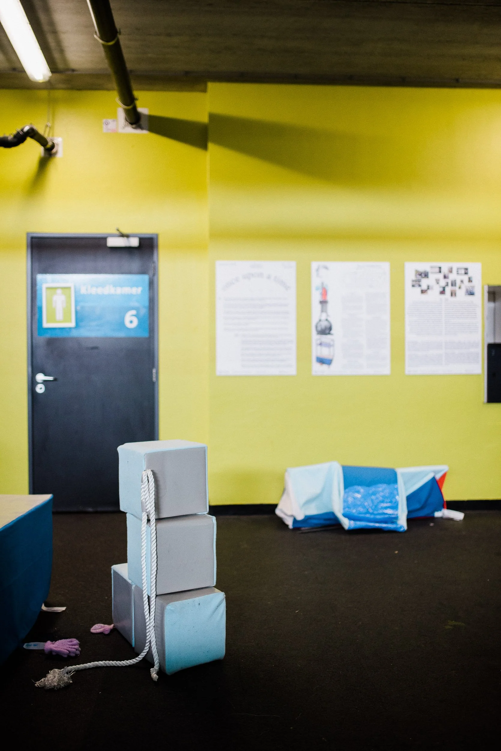 Definitief Proberen is a floor installation made from foam mats, commonly found in spaces where injuries may occur or in childcare settings where caregivers ensure safety. I chose this material as a metaphor to explore the saying “it takes a village.”